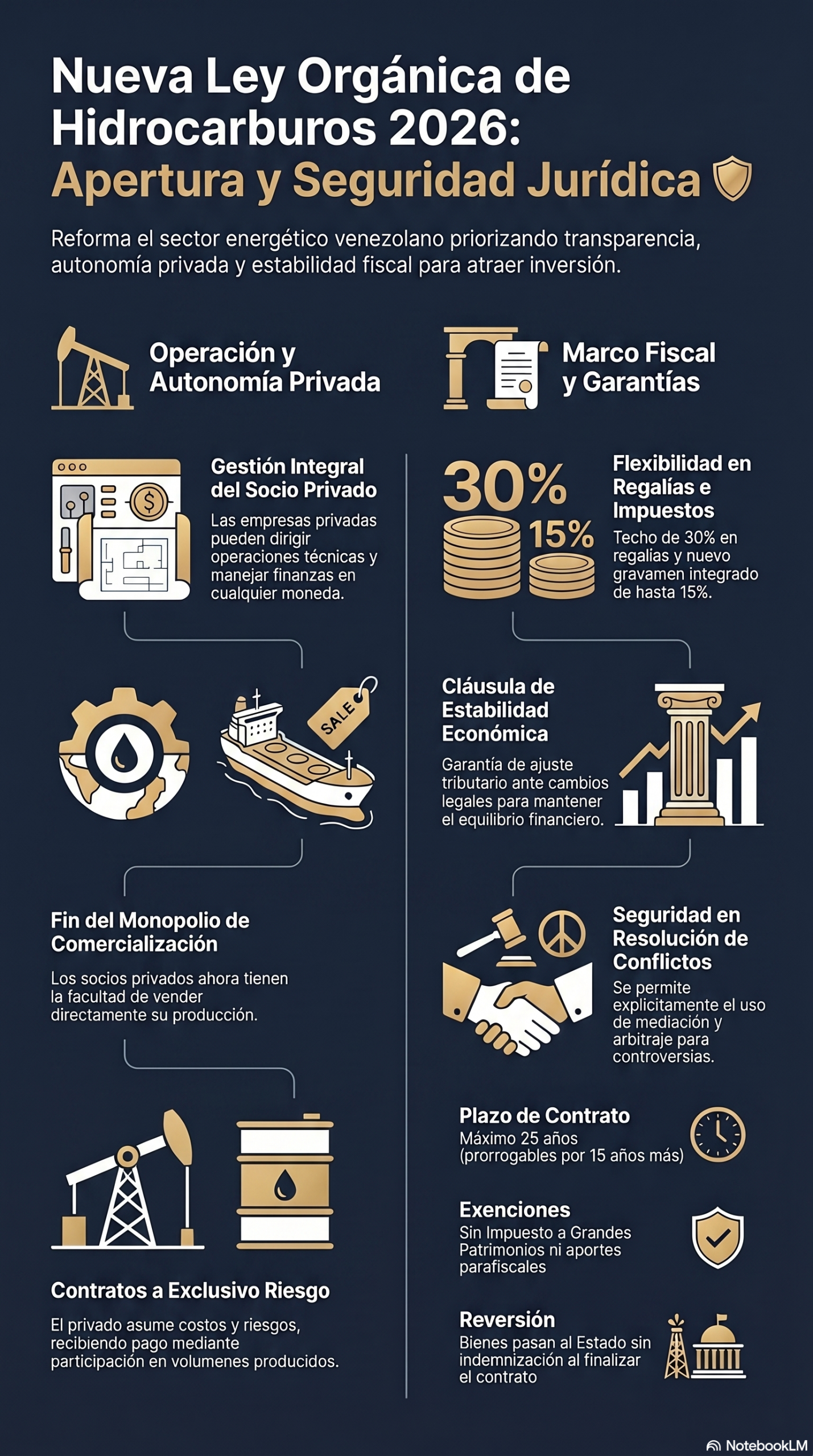 La Ley de Reforma de la Ley Orgánica de Hidrocarburos (LOH) fue sancionada el 29 de enero de 2026 y publicada en la Gaceta Oficial N° 6.978 Extraordinario. La normativa redefine el marco regulatorio para las actividades de exploración, extracción y comercialización, bajo principios que incluyen la seguridad jurídica, transparencia contractual y adecuación a la transición energética.